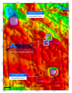 The Schryburt Lake Project is located in northwestern Ontario, Canada, within a prospective geological setting for rare earth elements and niobium mineralisation. The project is centred on a carbonatite alkaline intrusive complex interpreted to host multi phase carbonatite bodies with potential for REEs and Nb, along with associated phosphorus, iron, zirconium, and copper mineralisation. Four priority exploration targets have been identified across the project area, known as Blue Jay, Goldfinch, Blackbird, and Starling.